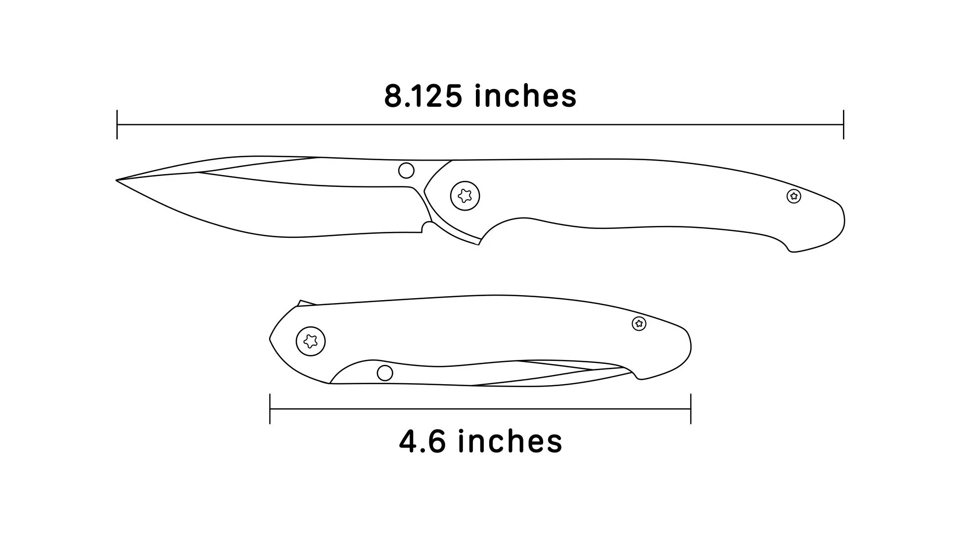 Diagram of a folding knife, showing open and closed positions. The open knife measures 8.125 inches, and the closed knife measures 4.6 inches.